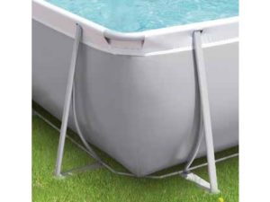 - Structure tubulaire autoportante brevetée en acier galvanisé et peint, de forme rectangulaire. La stabilité et la forme de la piscine sont les mêmes avec et sans eau à l’intérieur. Aucune liaison sous le bassin. Opérations d’assemblage et de maintenance plus faciles.