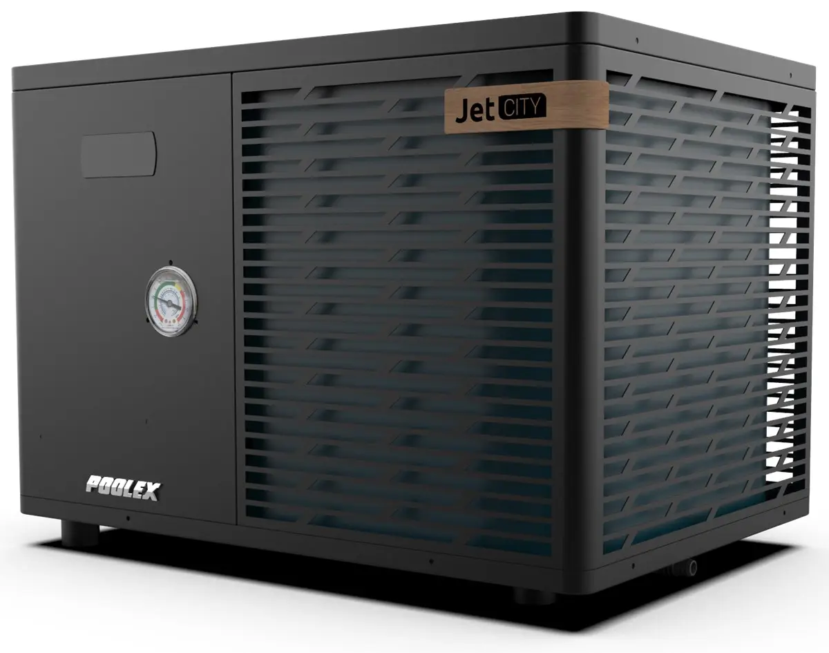 Avec un faible niveau sonore (28 dB à 10m) et une fonction réversible chauffage/refroidissement, elle garantit une température d’eau stable, protège le revêtement du bassin et réduit les coûts énergétiques. Efficace, durable et intelligente, Jet City est le choix idéal pour les petites piscines !