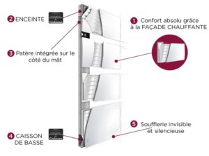 – Enceintes Bluetooth intégrées au radiateur sèche-serviettes, offrent un son haute définition Cabasse pour diffuser la musique